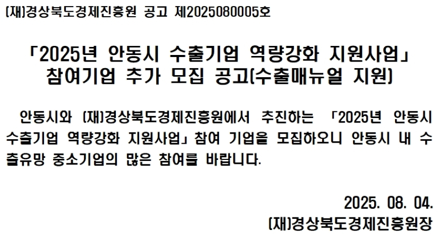 - 지원 대상: 안동시 소재의 수출 중소기업