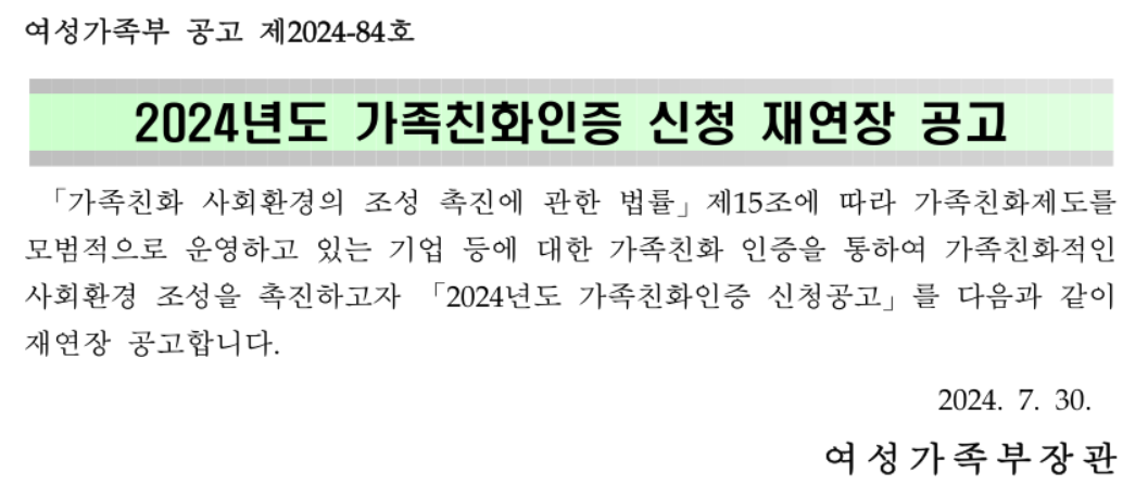 안녕하세요, 친구들! 오늘은 여러분에게 아주 중요한 소식을 전해드리려고 해요. 바로 2024년 가족친화인증 신청 추가 연장 공고에 대한 이야기입니다.