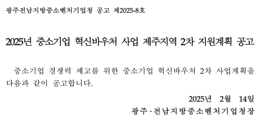 #중소기업 #혁신바우처 #제주지역지원 #2025바우처사업 #중소기업지원
